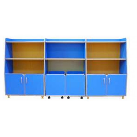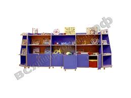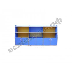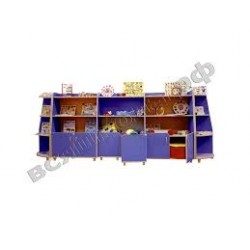 Выполнен из ламинированной ДСП 16 мм, края обрамлены кантом ПВХ 2 мм, Шкаф состоит из цельной конструкции с нишей под короб для игрушек. Имеет 5 открытых полок, низ закрыт четырьмя дверками, в центральном стеллаже расположены 2 выкатных короба для игрушек. Конструкция не имеет острых граней и углов. Стенка установлена на регулируемые опоры, позволяющие компенсировать неровности пола. Предусмотрено крепление шкафов к стене. «Василек-3» по усмотрению заказчика может быть дополнен: Шкафом для игрушек и пособий угловой ШДУ – 2 шт., Шкафом для игрушек и пособий угловой ТДУ - 2 шт. или коробом для игрушек КПД-2 шт.