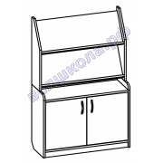 Витрина для книг из ЛДСП. Оснащена вместительной тумбой с дверцами и двумя или тремя выставочными полками на выбор.
