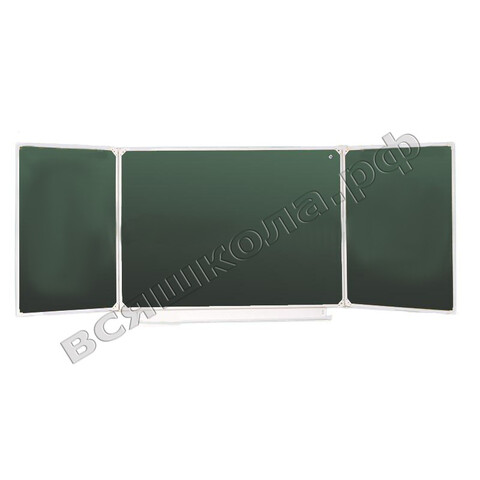 Доска предназначена для письма мелом, имеет 5 рабочих поверхностей с матовым антибликовым покрытием, которое обеспечивает четкую видимость изображений под любым углом зрения. Рабочая поверхность изготовлена из стального эмалированного листа, благодаря чему имеет высокую износоустойчивость и прочность. Торцы окантованы окрашенным металлическим профилем, замкнутым по контуру угольниками из ударопрочного полистирола. Внизу доски имеется лоток для мела. Стальная основа доски даёт возможность крепления наглядных учебных пособий к поверхности с помощью магнитов. В комплект входит фурнитура для крепления доски к стене.