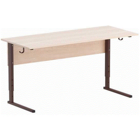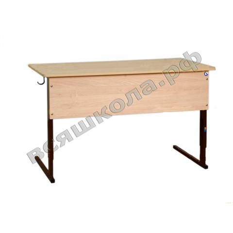 Позволяет регулировать высоту стола в зависимости от роста учащегося. Изготавливается на металлическом каркасе прямоугольного и квадратного сечения, окрашенном порошковой краской, стойкой к химическим и механическим воздействиям, на свободных концах труб установлены заглушки из ударопрочных полимеров. Столешница и передняя панель выполнены из ламинированной ДСП 16 мм, торцы столешницы облицованы кантом ПВХ 2 мм. Крепление металлической основы со столешницей осуществляется методом скрытого крепления, без выступающих на рабочей поверхности болтов. Имеется два крючка для портфелей. Каркас стола имеет полимерные подпятники, предотвращающие повреждение напольных покрытий.
