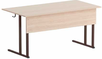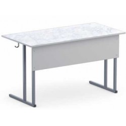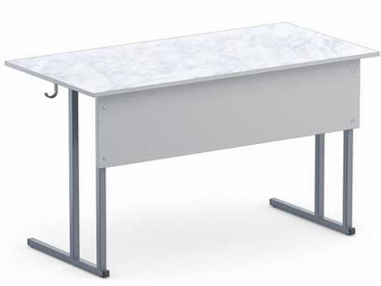 Стол ученический двухместный для кабинета химии изготавливается на металлическом каркасе прямоугольного сечения, окрашенном порошковой краской, стойкой к химическим и механическим воздейстиям, на свободных концах труб установлены заглушки из ударопрочных полимеров.Столешница выполнена из ламинированной ДСП 16 мм, облицована стойким к химическим воздействиям пластиком, торцы обрамлены кантом ПВХ 2 мм. Крепление металлической основы со столешницей осуществляется методом скрытого крепления, без выступающих на рабочей поверхности болтов. Имеется два крючка для портфелей. Каркас стола имеет полимерные подпятники, предотвращающие повреждение напольных покрытий.