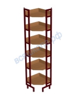 Выполнен на металлическом каркасе из трубы прямоугольного сечения 25х25 мм и уголков сечением 32х32 мм, каркас имеет цельносварную конструкцию, окрашен полимерным покрытием, стойким к химическим и механическим воздействиям, на свободных концах труб установлены заглушки из ударопрочных полимеров. Шкаф-стеллаж имеет 6 горизонтальных полок, изготовленных из ламинированной ДСП 16 мм, торцы обрамлены кромкой ПВХ. Предусмотрено крепление к стене.