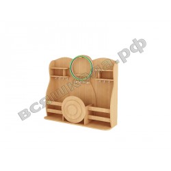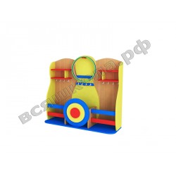 Спортивный уголок "Кегля" предназначен для хранения детского спортивного инвентаря и различных принадлежностей для проведения спортивных мероприятий. Есть ящик для мячей, крючки для скакалок и ленточек, полки для флажков, большой крючок для обручей. Передний фасад ящика стилизован под мишень - можно устроить соревнования по меткости. Спортивный уголок имеет колесные опоры, что дает возможность свободно передвигать его по помещению.