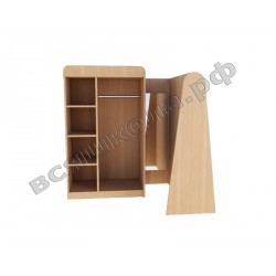 Этот уголок позволит детям почувствовать себя взрослыми, примеряя одежду и любуясь на свое отражение в зеркале. Подобно взрослым шкафам и гардеробам, уголок «Ряженья» имеет несколько полочек для вещей и обуви, перекладину для верхней одежды и зеркало.