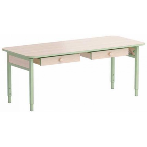 Конструкция стола позволяет регулировать высоту стола от второй (520 мм.) до третьей ( 580 мм.) группы роста, а угол наклона столешницы имеет шесть положений регулировки: от ноля до 30 градусов. Конструкция стола предусматривает два выдвижных ящика, которые крепятся к каркасу и передней панели. Столешница прямоугольная, выполнена из ДСП 16 мм с ламинированным покрытием, облицована кантом ПВХ 2 мм. Все углы закруглены. Каркас представляет собой цельносварную рамочную конструкцию, выполненную из стальной трубы квадратного сечения 20х20х1,5, 25х25х1,2 мм., окрашен стойкой к химическим и механическим воздействиям порошковой краской, на свободных концах труб установлены заглушки из ударопрочных полимеров.