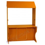 Стеллаж «Театр» с откидным столом. Стеллаж на колёсах. Дверцы раздвигаются и служат опорами для опущенной столешницы. На раздвижных дверцах установлены регулируемые опоры для устойчивости стеллажа.