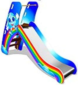Детская горка «Радуга» состоит из сборных модулей и оборудована пластмассовым скатом. Ограждения и элементы каркаса выполнены из стали. Изделие оборудовано перилами и поручнем безопасности на стартовой площадке.