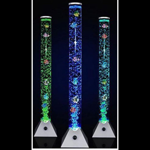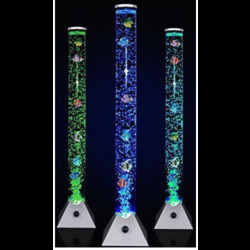 Питание: сеть 220В, Подсветка светодиодная разноцветная. Переключение цветов в автоматическом режиме. Высота колонны: 150см, Диаметр: 10см. Выполнена из пластикового акрилового стекла, Основание - пластик. В комплекте набор пластиковых рыбок. Пульт ДУ.