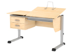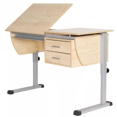 Столешница изготовлена из ЛДСП, цвет покрытия - клен, торцы отделаны противоударной кромкой ABS толщиной 2 мм. Часть столешницы (ШхГ, мм: 700х535) регулируется в 13 положениях под углом от 0 до 55 градусов, другая часть (ШхГ, мм: 490х535) закреплена горизонтально.