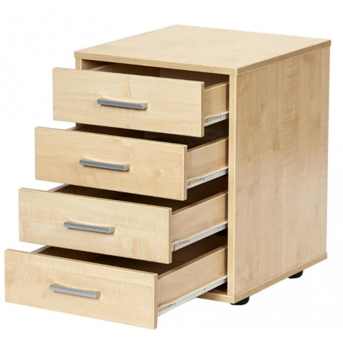 Тумба изготовлена из ЛДСП, цвет покрытия - клен, торцы отделаны противоударной кромкой ABS толщиной 2 мм, не подкатная, имеет регулируемые опоры. Тумба поставляется в собранном виде (требуется установка ручек и регулируемых опор, которые входят в комплект).