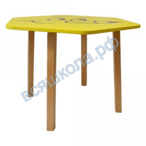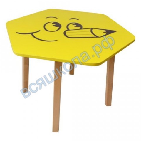 Прекрасный вариант для оснащения обеденной/игровой зоны в детском саду - это стол Веселый карандаш. Он изготавливается из массива березы и ЛДСП. На шестигранную столешницу наносится УФ-печать*.