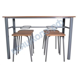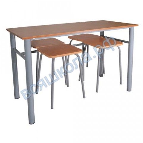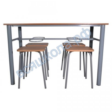 Удобный стол оборудован специальными подставками для табуретов. С ними просто совершать уборку помещения.
