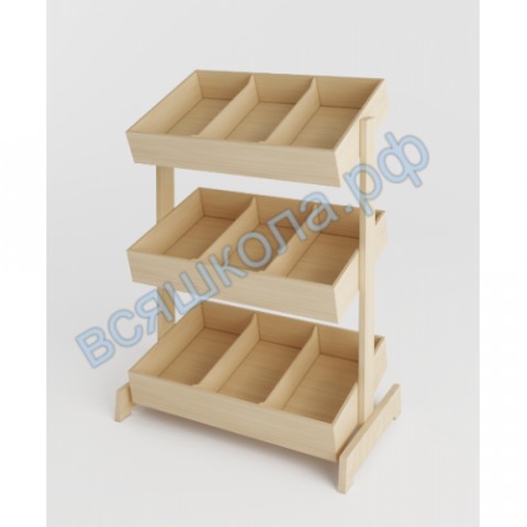Удобный стеллаж пригодится для хранения мячей или других мелких вещей. Конструкция изготовлена из фанеры и покрыта лаком.