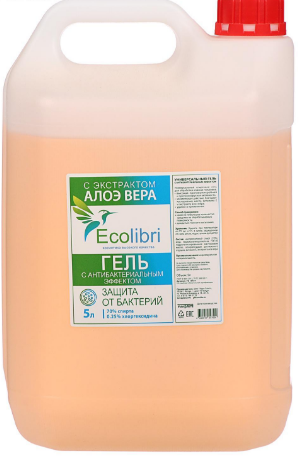 Антисептик для рук Ecolibri с антибактериальным эффектом, гель, 5 литров