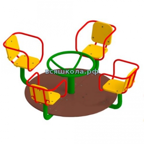 Небольшая карусель обязательно понравится деткам и украсит двор яркими цветами.