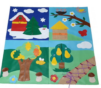 Дидактическое панно «Времена года» предназначено для проведения занятий по развитию речи, окружающему миру в детских садах, школах и для дома. С помощью панно дети развивают мелкую моторику и творческие способности.