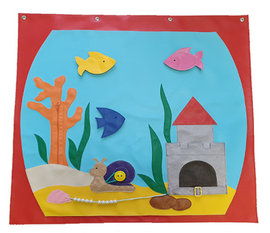 С помощью панно ребенок может составить самостоятельный рассказ об обитателях аквариума и их особенностях.