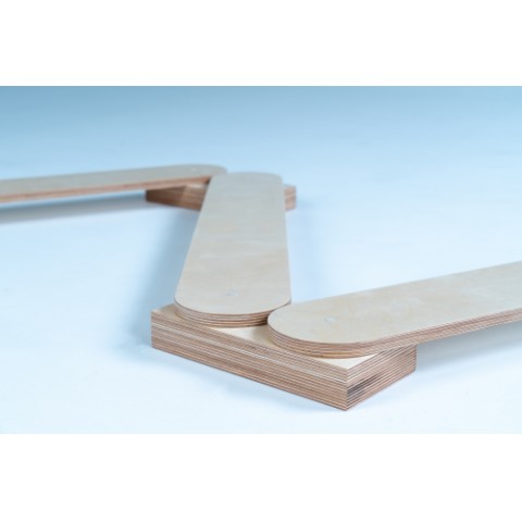 Из оснований и досочек-дорожек можно пострить дорожку любой конфигурации, с перепадами высот и поворотами под разными углами.