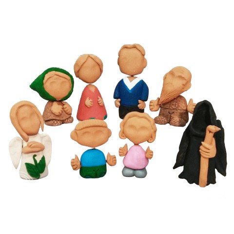 В набор входят восемь фигурок: мужчина, женщина, пожилой мужчина, пожилая женщина, мальчик, девочка, добро, зло.