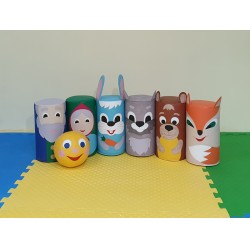 Модули-персонажи можно использовать в качестве разметки для упражнения «Змейка», перешагивания, перепрыгивания, обегания и других активных игр или в качестве кеглей для игры в боулинг. Во время подвижных игр развивается крупная моторика, координация движений, ловкость и меткость.