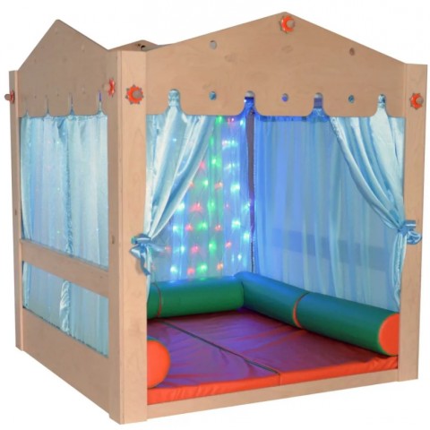 куполом устанавливаются светодиодные сети, создающие сказочную атмосферу. На полу располагается мягкий