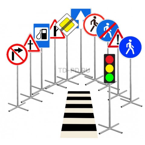 10 знаков , светофор , зебра. Размеры знака:250х250х1100мм Из металлической трубы 18 и 22мм , ПВХ Зебра: поролон,кожзам 1000х600мм Стойки разборные. Вес набора 15 кг Объём 0,05м/куб