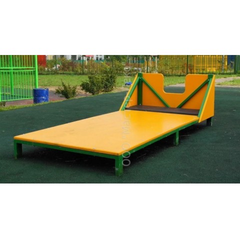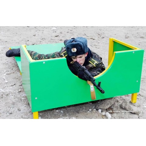 Окоп состоит из металлического каркаса, окрашенного полимерно-порошковой краской, устойчивой к воздействию неблагоприятных погодных условий и ультрафиолета. Каркас обшивается влагостойкой ламинированной фанерой с сетчатым покрытием. Длина 2200 мм, ширина 1040 мм, высота 600 мм.
