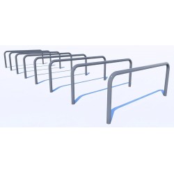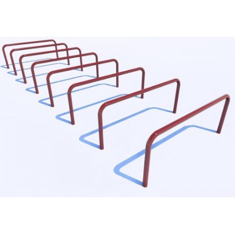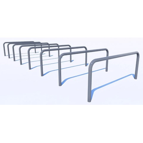 Барьер-дуги (6 штук) состоят из металлической трубы, окрашенной полимерно-порошковой краской, устойчивой к воздействию неблагоприятных погодных условий и ультрафиолета. Длина 2500 мм, ширина 1200 мм, высота 500 мм, глубина бетонирования 500 мм.