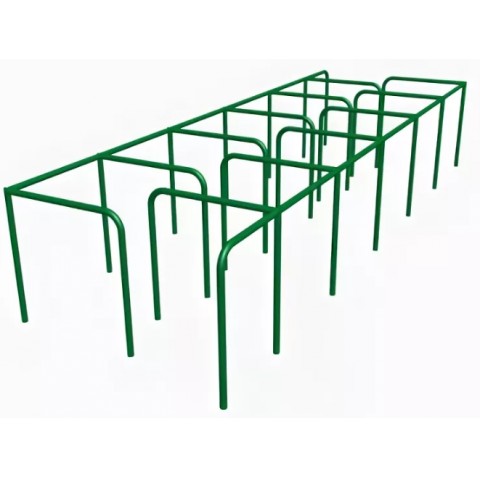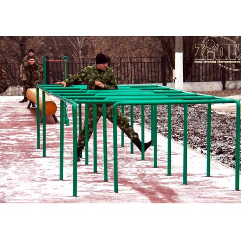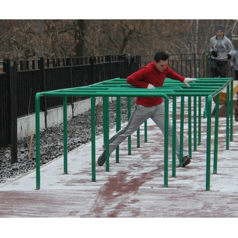 Лабиринт состоит из сборной металлической конструкции, окрашенной полимерно-порошковой краской, устойчивой к воздействию неблагоприятных погодных условий и ультрафиолета. Длина 6100 мм, ширина 2000 мм, высота 1100 мм, глубина бетонирования 400 мм.