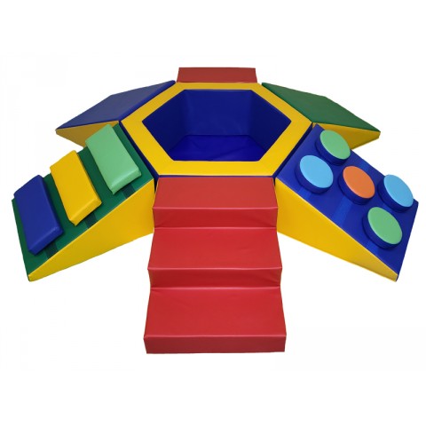 Мягкий спортивный набор позволяет детям научиться преодолевать препятствия в игровой форме, развивает двигательную активность, ловкость, координацию движений.