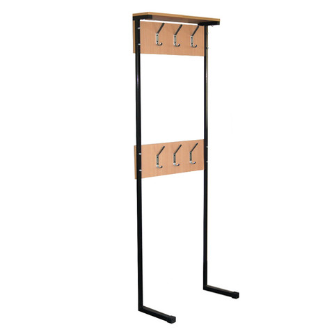 Металлокаркас: труба-квадрат 20х20; 25х25 Покрытие каркаса: полимер ЧЕРНЫЙ ЛДСП БУК 16мм Крючки металлические 6 штук. Размеры:500х250х1600мм Вес: 9кг Объём:0,01м/куб ЛДСП Бук , Каркас Чёрный