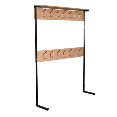 Металлокаркас: труба-квадрат 20х20; 25х25 Покрытие каркаса: полимер ЧЕРНЫЙ ЛДСП БУК 16мм Крючки металлические 14 штук. Размеры:1100х250х1600мм Вес: 14кг Объём:0,018м/куб ЛДСП Бук , Каркас Чёрный