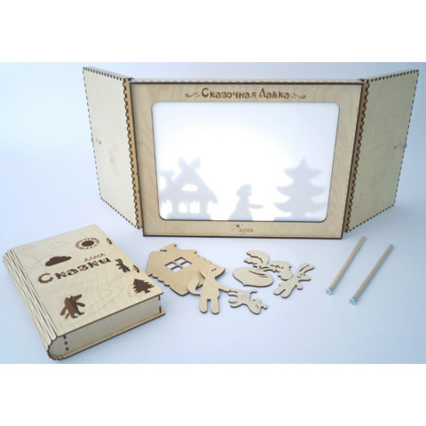 Комплектация: Экран театральных представлений Подставка под фонарик или телефон Набор магнитных персонажей из русских народных сказок Система хранения Магнитные указки, 4 шт.