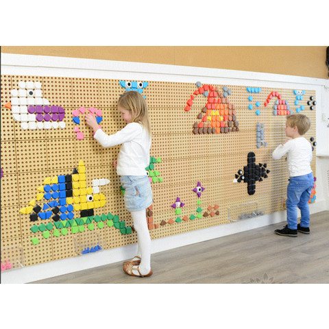 Представляет собой стационарное основание из березовой фанеры, на которое крепятся пластиковые панели с круглыми отверстиями для возможности фиксации образовательных комплектов. Используется внутри помещения.