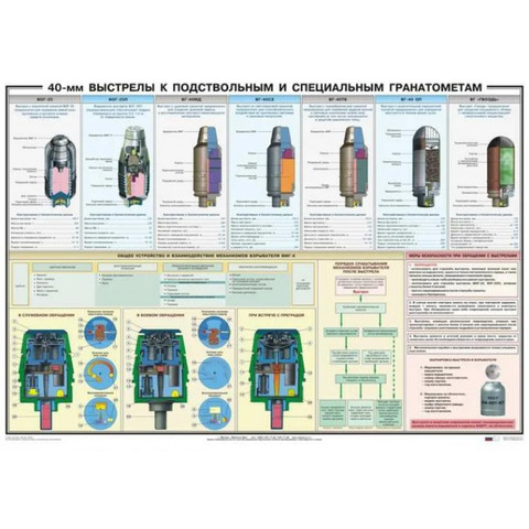 Плакат Выстрелы к подствольным и специальным гранатометам 40-мм 100х70