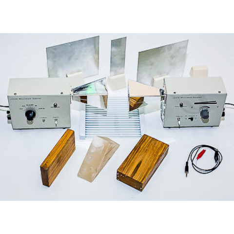 Комплектность: блок СВЧ-генератора с предохранителем – 1 шт., блок приемника – 1 шт., металлический экран (пластина-экран из дюралюминия) – 3 шт., металлическая решетка – 1 шт., бруски из дерева – 2 шт., парафиновая равнобедренная призма (поглощающий экран) – 1 шт., пластмассовые подставки для пластин-экранов (держатели экрана) – 4 шт., провод (кабель связи) – 1 шт., руководство по эксплуатации – 1 шт.