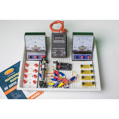 Состав комплекта: источник питания постоянного и переменного тока (4,5 В) – 1 шт., вольтметр (0–6 В, цена деления 0,2 В; 0–3 В, цена деления 0,1 В) – 1 шт., амперметр (0–3 А, цена деления 0,1 А; 0–0,6 А, цена деления 0,02 А) – 1 шт., резистор с обозначением R1, сопротивление (4,7±0,5) Ом - 1 шт., резистор с обозначением R2, сопротивление (5,7±0,6) Ом - 1 шт., резистор с обозначением R3, сопротивление (8,2±0,8) Ом - 1 шт., набор проволочных резисторов plS (резисторы обеспечивают проведение исследования зависимости сопротивления от длины, площади поперечного сечения и удельного сопротивления проводника) - 1 шт., лампочка с номинальным напряжением 4,5 В, сила тока 0,5 А - 1 шт., переменный резистор (реостат), сопротивление 10 Ом - 1 шт., соединительные провода - 10 шт., ключ - 1 шт., лоток пластиковый размером 340*270*55 мм - 1 шт., учебное пособие «Лабораторные наборы по курсу физики» (автор Е.Ю. Косарева – 68 страниц – печать офсетная, обложка полноцветная) – 1 шт., руководство по эксплуатации - 1 шт.