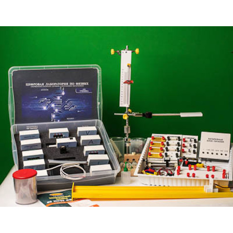 Лаборатория состоит из цифровой части (измерительных датчиков с программным обеспечением) и комплекта оборудования.