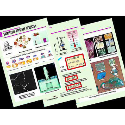 Комплект охватывает следующие темы: дискретное строение вещества, взаимодействие частиц вещества, количество вещества, температура, давление газа, уравнение состояния идеального газа, теплоемкость, кристаллы, модели кристаллических решеток, ионный проектор.