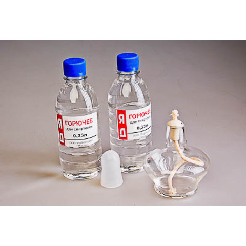 Состав набора: Горючее для спиртовок - 0,66 л. Спиртовка лабораторная - 1 шт.