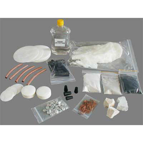 Комплектность: алюминий гранулированный - 0,05 кг, кальция карбид - 0,05 кг, кальция карбонат (мраморная крошка) - 0,5 кг, крахмал картофельный - 0,05 кг, медь - 0,05 кг, парафин - 0,5 кг, уголь активированный - 0,05 кг, горючее для спиртовок - 0,66 л, пробки резиновые - 15 шт., трубки резиновые - 5 шт., фильтры Ø 5,5 см (уп.) - 2 шт., фильтры Ø 12,5 см (уп.) - 1 шт.