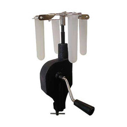 Прибор состоит из крестообразной пластины с вилками на концах. К вилкам подвешены на осях кольца с пластмассовыми полыми цилиндрами для вкладывания в них стеклянных пробирок. Пластина закреплена с помощью втулки на шпинделе центробежной машины. Передача вращательного движения от рукоятки к шпинделю осуществляется посредством червячной передачи. Отношение числа оборотов рукоятки к числу оборотов шпинделя 1:16.