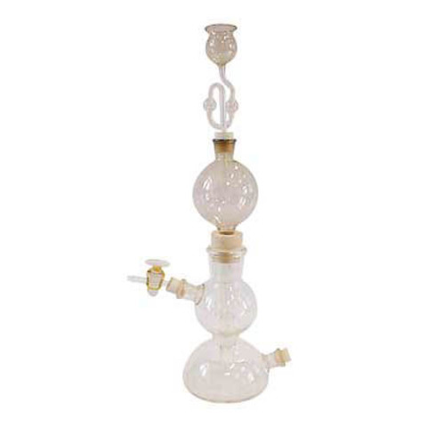 Аппарат Киппа используется для получения водорода и углекислого газа. Состоит из сосуда и шаровой воронки, сообщающихся между собой. Когда воронка вставлена в сосуд, между её трубкой и суженным местом сосуда получается зазор, через который полушар сообщается с шаром. Сообщение прибора с внешней средой осуществляется благодаря тубусу.