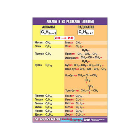 Таблица демонстрационная "Алканы и алкилы" (винил 70х100)
