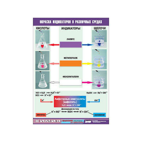 Таблица демонстрационная "Окраска индикаторов в различных средах" (винил 100х140)