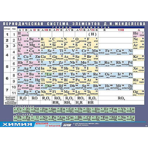 Таблица демонстрационная "Периодическая система элементов Д. И. Менделеева" (винил 100х140)