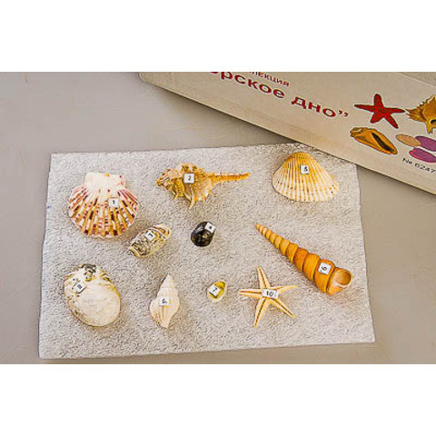 Коллекция включает биологические объекты, которые можно встретить на морском дне: морские звезды, раковины моллюсков. Объекты пронумерованы соответственно списку, смонтированы на листе пенополиуретана и упакованы в картонную коробку.