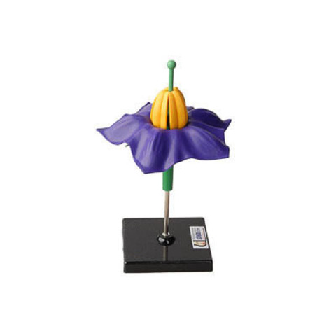 Модель демонстрирует строение цветка картофеля. Модель разборная, снабжена пластмассовой подставкой. Детали модели изготовлены из пластмассы и окрашены в естественные цвета.