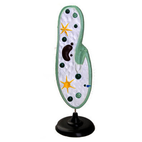 Модель изготовлена из пластмассы, раскрашена. Демонстрирует внешнее и внутреннее строение инфузории-туфельки. На модели представлены следующие детали строения простейшего: реснички, передняя сократительная вакуоль, макронуклеус (большое ядро), цитоплазма, пищеварительная вакуоль, передняя сократительная вакуоль, цитостом (рот), глотка, перистом (предротовая полость), микронуклеус (малое ядро), пелликула (наружная оболочка).