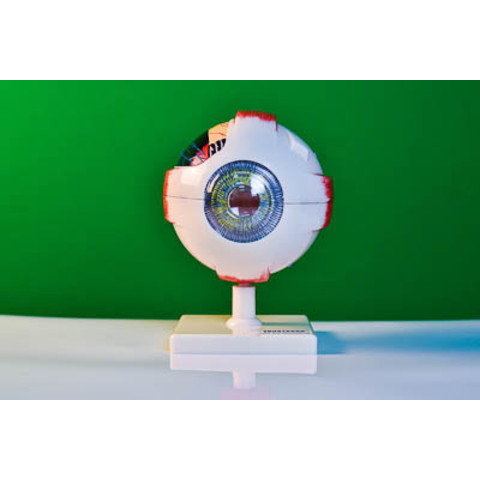 Модель разборная, раскрашенная, изображает глаз человека, демонстрирует строение зрительного анализатора.